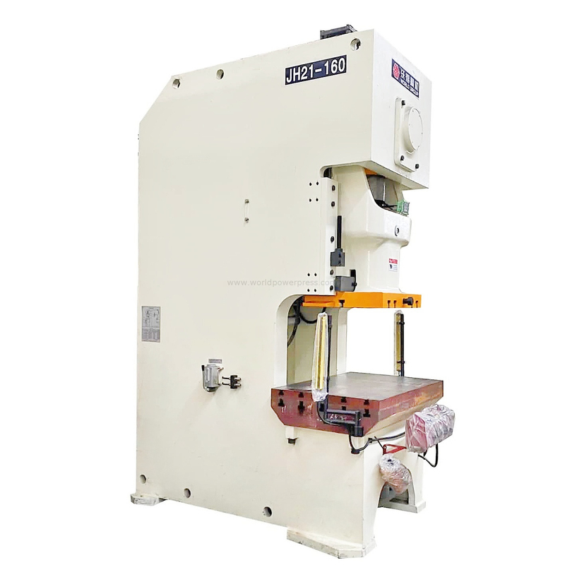 JH21-160 is a C frame single crank press machine with power tonnage of 160ton. This press machine is a mechanical type press with pneumatic clutch.PLC control, hydraulic overload protection, automatic grease lubricant, motorized slide adjustment. It is an automatic press machine with working modes as continuous, single circle and inches moving.